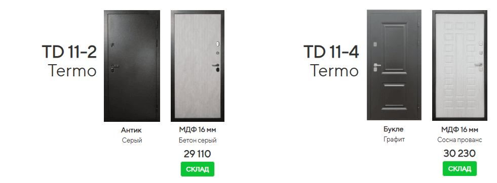 Серия TD Termo предлагает входные двери с улучшенной теплоизоляцией, что делает их идеальными для использования в холодных климатических условиях. Прочные материалы и продуманные детали конструкции обеспечивают надежность и долговечность. Эти двери сочетают в себе эстетику и функциональность, создавая комфортный микроклимат в вашем доме.